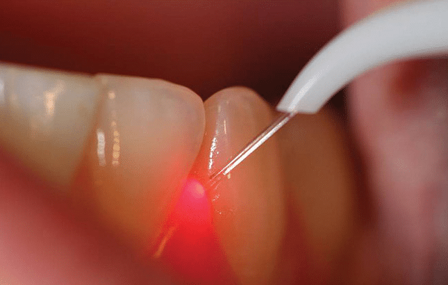 Il raggio del Laser a Diodi focalizza l’azione solo sulla parte da trattare e questo permette di intervenire sulla parte con minori dosi di anestetico. Trova efficace impiego anche nei trattamenti estetici di sbiancamento dentale.